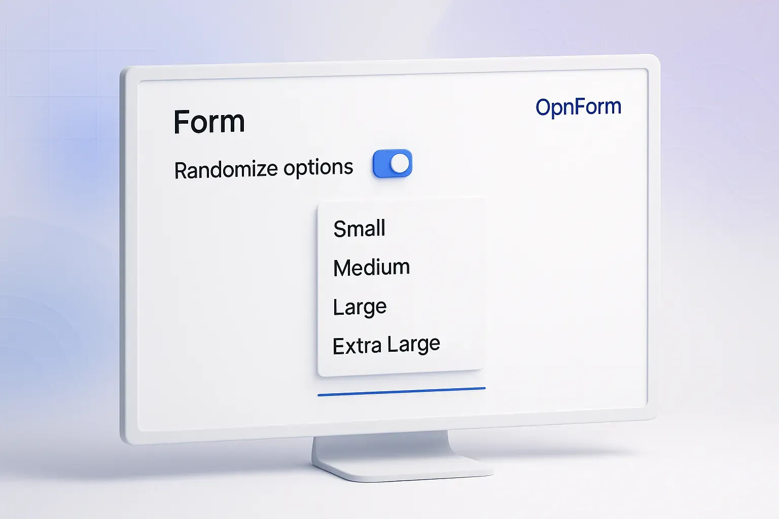 OpnForm now allows you to randomize the display order of options in dropdowns, checkboxes, and radio buttons. This enhancement helps reduce bias and order effects, making it ideal for quizzes, surveys, polls, and forms where fair option presentation is important. Collect more accurate and unbiased responses while improving the overall user experience.
